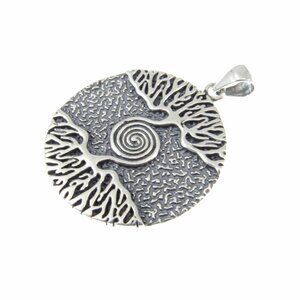 Solid 925 Sterling Silver Celtic Spiral and Roots Tree of Life Viking Pendant
