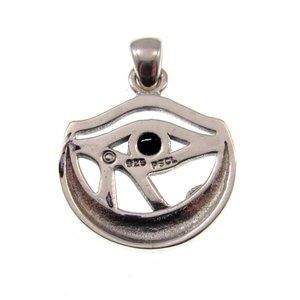 The Eye of Horus is an ancient Egyptian symbol believed to be an effective source of protection and a symbol of strength and perfection. Horus was the ancient Egyptian sky god who was usually depicted as a falcon, or with a Falcon’s head. The eye is personified in the goddess Wadjet also known as “The Eye of Ra,” which originates from the struggle between Horus and Seth. In the said fight, Horus loses his left eye which is taken by Seth, but then Horus acquires spiritual sight, the eye of light. The eye was later healed by Thoth and returned to Horus which is now known as Wadjet. This gorgeous pendant features the eye of horus symbol perched atop a Celtic crescent moon. Handcrafted in solid sterling silver, the pendant is adorned with a genuine lapis lazuli gemstone. Truly a pendant that would make anyone proud to wear.