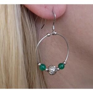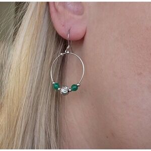 Solid 925 Sterling Silver Fine Jewelry Round Hoop Earrings green Aventurine