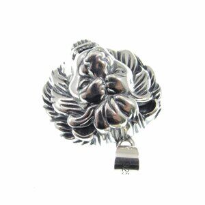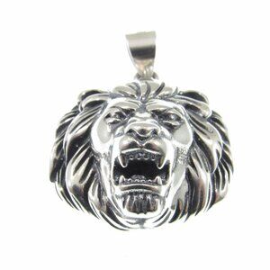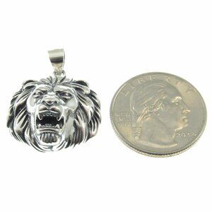 This sterling silver lion head pendant is a striking piece of jewelry that exudes strength and courage. The pendant features a detailed and realistic depiction of a lion's face, showcasing intricate details such as the texture of the mane, the fierce expression, and the piercing eyes. Crafted from high-quality sterling silver, the pendant has a polished finish with oxidized recesses that highlight its craftsmanship. The lion symbolizes bravery, leadership, and power, making this pendant a meaningful accessory for those who resonate with these qualities.