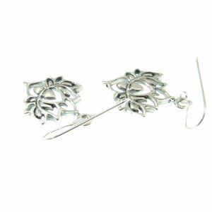 The lotus flower is a powerful symbol of enlightenment, renewal, and strength, making these earrings more than just an accessory—they're a reflection of inner peace and mindfulness. Crafted from solid sterling silver, these lightweight boho dangle earrings are perfect for everyday wear, yoga lovers, or anyone who adores nature-inspired jewelry. Each handcrafted lotus earring features a delicately detailed openwork design, allowing the silver to catch the light beautifully. The French hook ear wires ensure a comfortable, secure fit, making these earrings ideal for all-day wear.