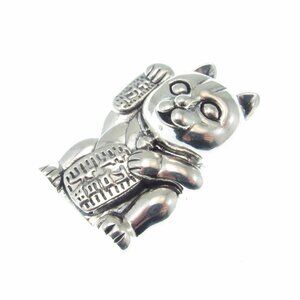 Solid 925 Sterling Silver Lucky Cat / Maneki Neko Slide Pendant Japanese Fortune
