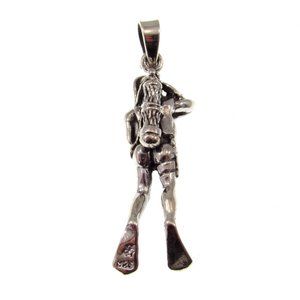 Solid 925 Sterling Silver Scuba Diver Pendant, Deep Sea Aquanaut Jewelry