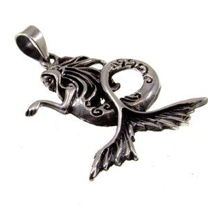 This intricately detailed sterling silver pendant features a graceful mermaid with flowing hair and a curled, embellished tail, extending her hand in a pose that’s both mysterious and elegant. With swirling accents and textured fins, this sea nymph pendant evokes the magic and mythology of ocean lore. Perfect for lovers of the sea, fantasy enthusiasts, and those who embrace mermaidcore or coastal living styles. Whether worn alone or layered, it adds a touch of enchantment and timeless nautical charm to any jewelry collection.