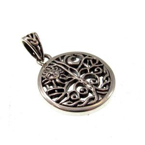 Handcrafted Solid 925 Sterling Silver Sun & Crescent Moon Tree of Life Charm Pendant