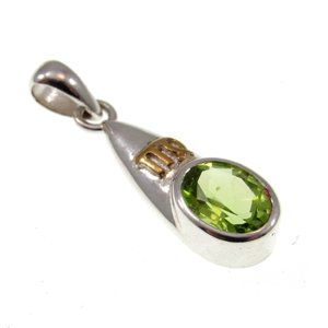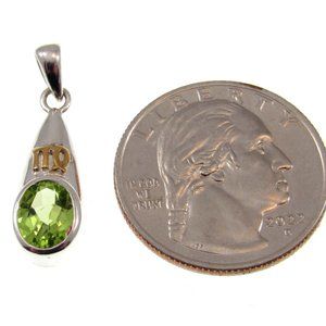Handcrafted Solid 925 Sterling Silver and 14K Gold Accent Virgo Symbol w/ Peridot Pendant