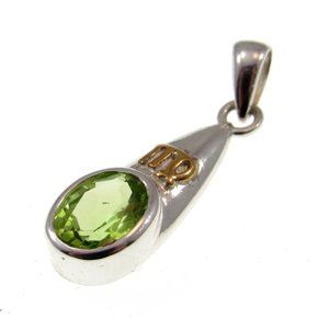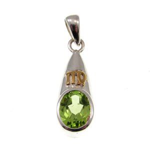 Solid 925 Sterling Silver Virgo Zodiac Symbol Pendant with Faceted Peridot
