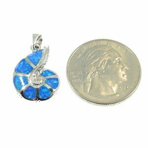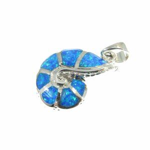 Solid 925 Sterling Silver and Blue Opal Nautilus Seashell Ammonite Pendant