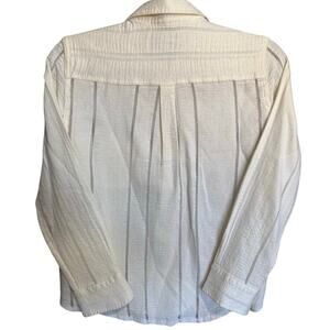 Solid And Striped Oxford Pocket Button Down Tunic Top Wool Silk Size Medium