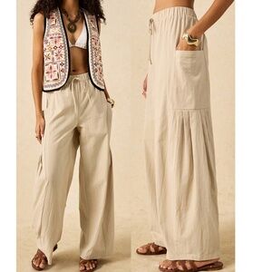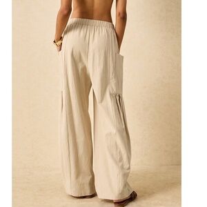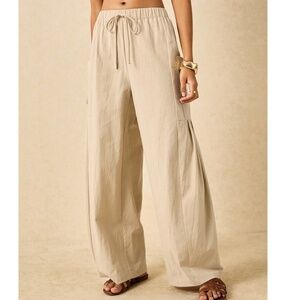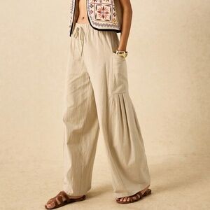 Solid Beige Stretchy Waist Straight Leg Pleated Pants
