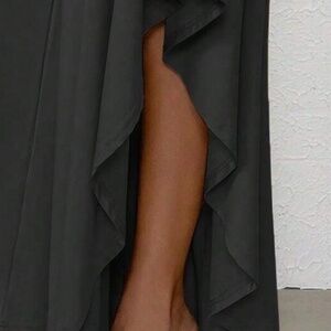 Solid Black High Waisted Stretchy Wide Leg Ruffle Pants