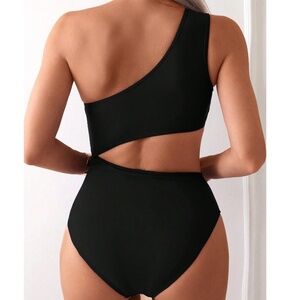 Solid Black One Shoulder Cutout Monokini One Piece Swimsuit