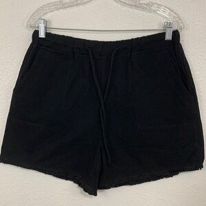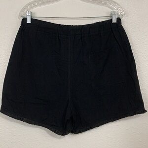 Solid Black Raw Hem Cotton Pull On Shorts Size L
