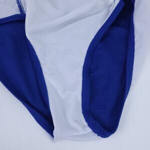 This swimsuit is in excellent condition and looks like new. Its solid blue color and conservative design make it perfect for those looking for a modest swimsuit. It is lightweight and breathable, so you can stay comfortable and confident in the water. The adjustable straps and removable light pads make it easy to customize the fit and coverage to your preference.