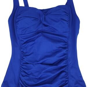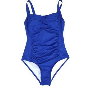 Solid Blue One Piece Swimsuit Small Women, Ruched Design, Adjustable Straps