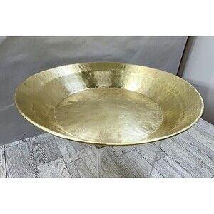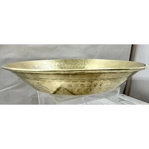 This exquisite brass serving bowl is a true vintage gem. Crafted in India with intricate hammering, it features a beautiful design that is sure to add a touch of elegance to any table setting. Measuring 1.75T x 10inW, this bowl is perfect for serving your favorite dishes to family and friends.