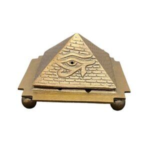 Solid Brass Egyptian Pyramid Incense Burner Eye of Horus Decor Spiritual