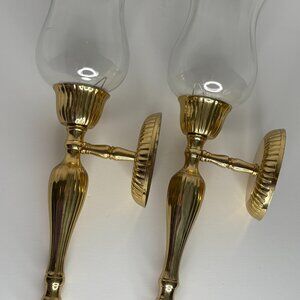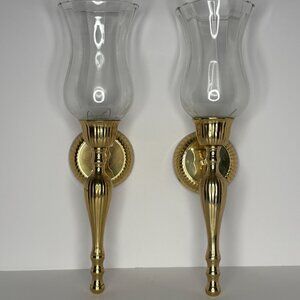 Solid Brass Lacquered Crystal Glass Globe Sconce Set of 2 Vintage 80s Flush