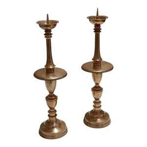 Solid Brass Pricket Candlesticks Set of 2 – 18" Tall Patinated Spike Candle Holders 20th Century Old World Gothic Decor Vintage Altar Style