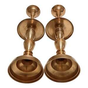 Dating to the 20th century, these elegant candlesticks bring an Old World charm, ideal for Gothic, Medieval, ecclesiastical, or classical décor. Whether displayed on a mantel, dining table, or altar setting, these brass pieces offer a timeless sophistication and antique warmth.