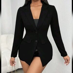Solid Button Front Lapel Neck Blazer