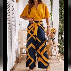 Solid Color Cropped Top With Collar And Geometric Pattern