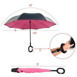 You can open this inverted umbrella as you open the door or car and not get wet. When closed, the wet side of umbrella becomes inside with the dry side exposed