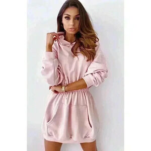 Solid Color Mid Length Polyester Hoodie for Fall Fashion