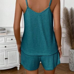 Stay stylish and comfortable in this chic teal sleeveless two piece set. Perfect for casual outings or lounging at home.