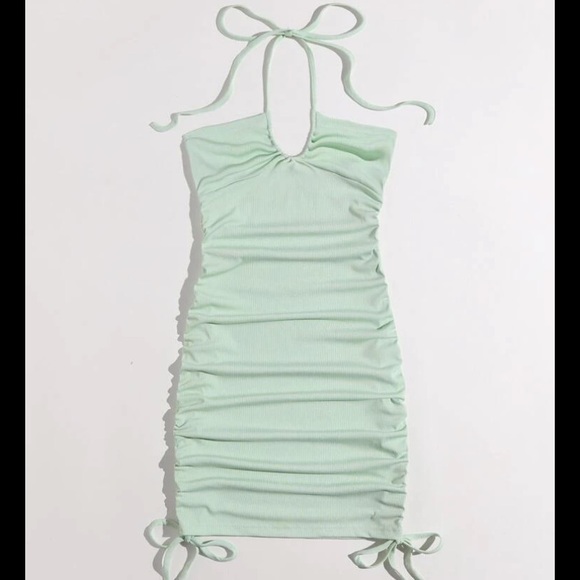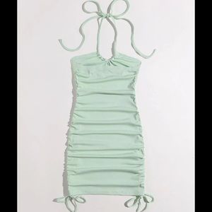 Solid Drawstring Ribbed Bodycon Dress