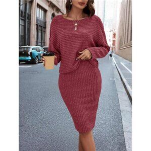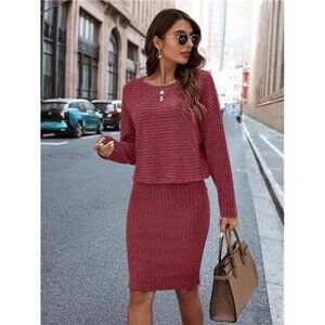 -Item id 25368252 -Details: Rib-Knit -Neckline: Round Neck -Sleeve Type: Drop Shoulder -Style: Casual -Color: Burgundy -Pattern Type: Plain -Tops Sleeve Length: Three Quarter Length Sleeve -Skirts Length: Knee Length -Tops Length: Crop -Top Type: Tee -Bottom Type: Skirt -Skirts & Tops Material: Knitted Fabric -Skirts & Tops Composition: 81% Polyester, 15% Viscose, 4% Elastane -Temperature: Spring/Fall (18-25℃/63-77℉) -Fit Type: Loose -Fabric: High Stretch -Care Instructions: Machine wash or professional dry clean -Sheer: No **OPEN TO OFFERS!!!** **BUNDLE TO SAVE MORE** **30% OFF BUNDLES OF 2 OR MORE ITEMS!!** ***ORDERS GO OUT WITHIN 5-10 BUSINESS DAYS!! THANK YOU FOR YOUR PATIENCE!! MULTIPLE SIZES AND COLORS AVAILABLE IN MOST STYLES DON'T SEE YOUR SIZE OR COLOR LISTED, JUST ASK.