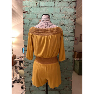 "Experience the ultimate in comfort and style with our Solid Gold Romper. Made from premium, lightweight fabric, this romper will keep you cool and comfortable all day long. Its solid gold color adds a touch of luxury, making it perfect for any occasion. Its flattering fit and versatile design make it your new go-to outfit for work, play, or a night out. Upgrade your wardrobe with this must-have piece today!