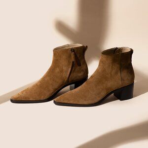 Premium Craftsmanship: Made from 100% waterproof kid suede, with a sleek stacked leather heel for a timeless look.