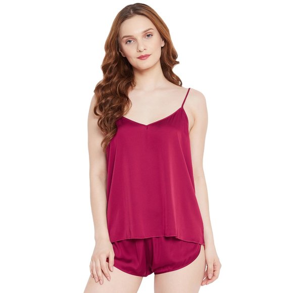 Solid Jester Red 2 Pcs Satin Shorts Sleepwear for Women