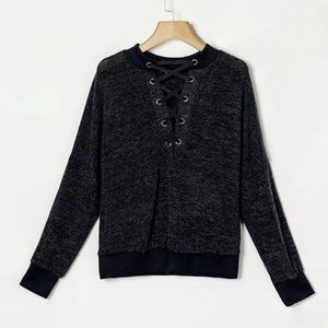 Solid Lace-Up Sweater