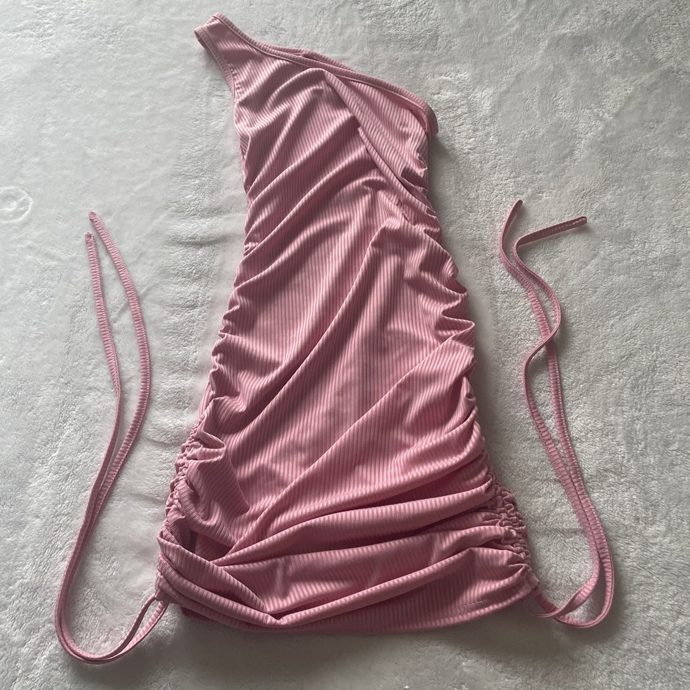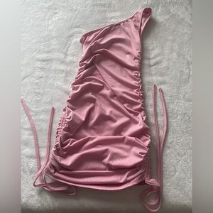 Solid One Shoulder Drawstring Side Ribbed Bodycon Dress