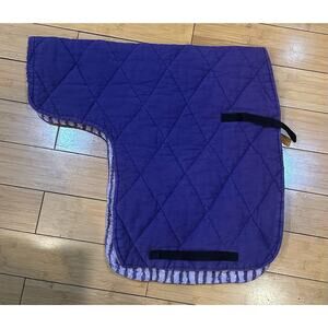 This is a gently used solid purple saddle pad underside is purple striped terrycloth. Very good condition with no rips or holes. From a smoke free environment.