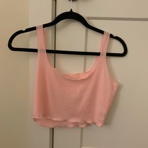 Small, never worn before tank top from SHEIN, with a boxy neckline. The shirt is light pink.