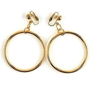 Solid Ring Hoop Clip On Earrings Gold Tone