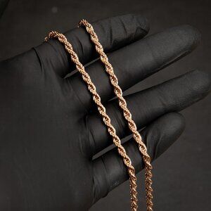 Solid Rose Gold Plated 316 Stainless Steel 4MM Twist Rope Chain Necklace