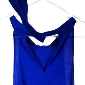 Solid Royal Blue Ruffle Hem Halter Dress Boho Bow Back Tiered Flounce Sleeveless