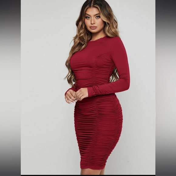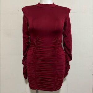 Women's | Dress | Mini Dress | Stretch Dress | Burgundy Dress | Long Sleeve | Bodycon