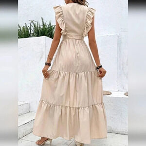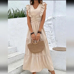 Solid Ruched Ruffle Hem Dress