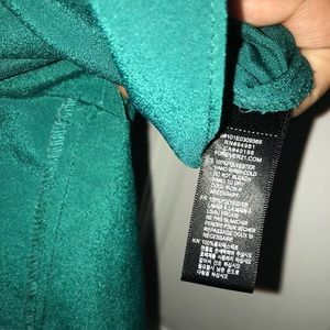 Material is polyester and has adjustable straps. Worn only once, length may be above the belly depending on your height. Fabric makes it a fresh and cute summer piece.
