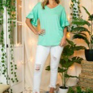 Solid Seafoam Green Flare Sleeve Twist Bottom Top