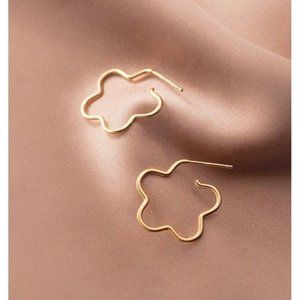 Solid Silver Flower Hoop Stud Earrings-SS038 Gold