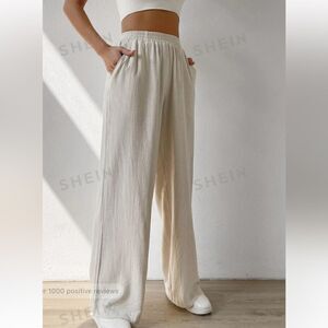 Solid Slant Pocket Linen Wide Leg Pants Apricot size large 8/10 NWOT