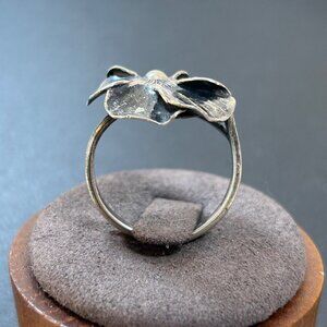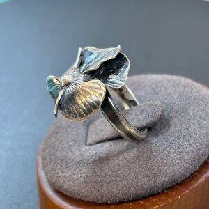 Vintage Sterling Silver 925 Pansy Flower Ring Adjustable Shank Ring Size 6-8