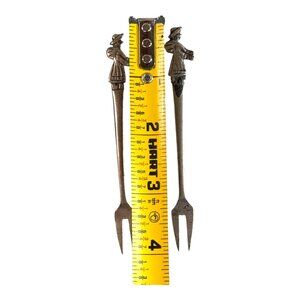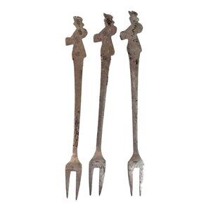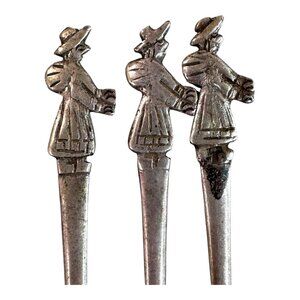 Enhance your table setting with these elegant vintage sterling silver cocktail forks. Featuring detailed Peru women figurines, they add charm and sophistication to any gathering.