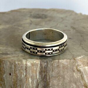 Solid Sterling Silver 925 Chunky 7.5MM Wide Geometric Pattern Unisex Spinner Band Ring